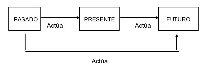 - Esquema del tiempo lineal tal y como lo conocemos. Se utiliza en disciplinas como la psicología, la psicoterapia, etcétera.